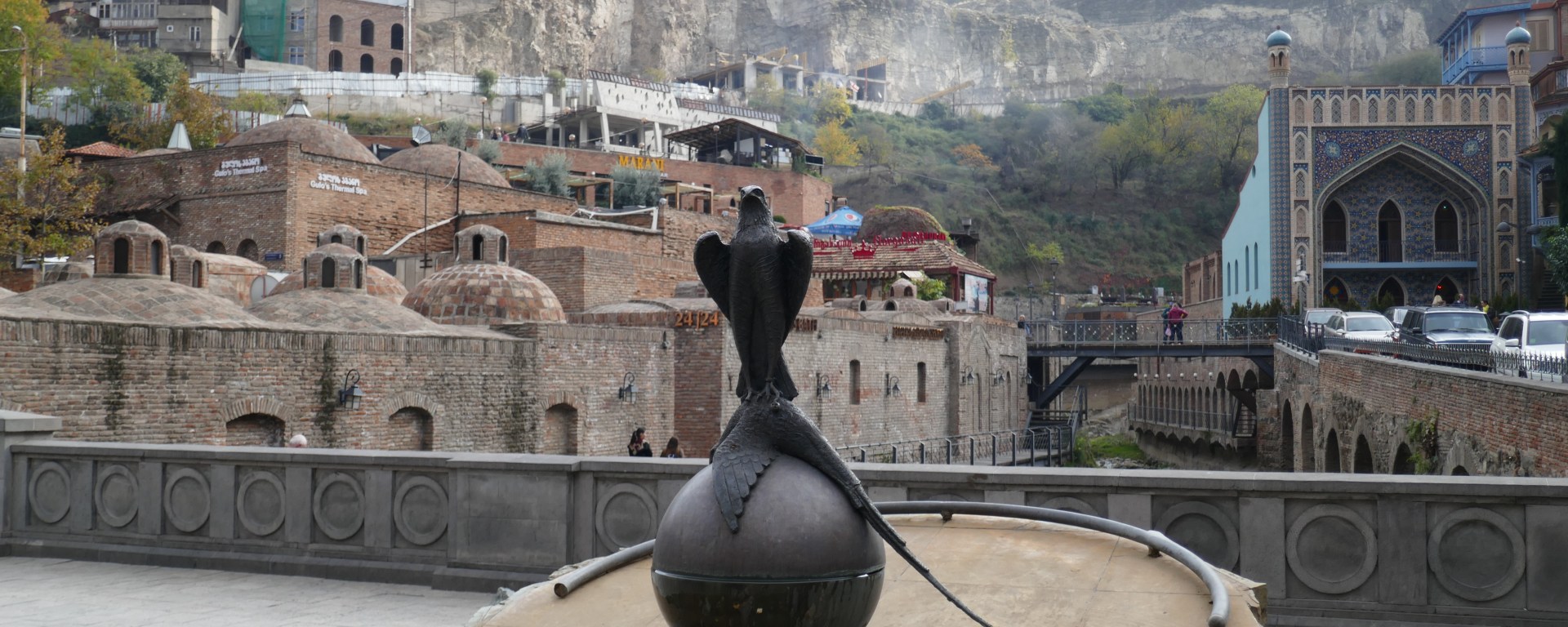 We eindigen de tour bij de badhuizen. Tbilis betekent warm. De naam is aan de stad gegeven na het ontdekken van warmwaterbronnen. Dat wetende kunnen we niet anders dan een badhuis bezoeken als we Tbilisi echt willen meemaken. Als het ook nog regent is het extra heerlijk om een uurtje in het zwavelbad te liggen en te zien of de (‘Turkse’) scrub weer zoden aan de dijk zet. En natuurlijk doet dat het.