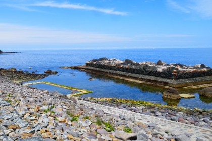De eerste bestemming is een zee onsen. Dit is een natuurlijk heet waterbad in zee. Super gaaf. Het hete bronwater wat uit de grond omhoog komt, wordt d.m.v. muren van de zee afgescheiden. Althans bij laag water. Alleen bij laag water kan je zodoende badderen in het hete water en de nodige afkoeling vinden in de zee. Bij vloed stroomt het bad meer en meer vol met koud en zout zeewater. We zijn er op het juiste tijdstip en ervaren beide. Heerlijk verfrist, zetten wij onze tocht voort. We passeren de 18.000 km en slapen achter een Michi-no-Eki, waar je overdag kunt koken op een natuurlijke geiser. Helaas zijn wij daarvoor juist te laat en helaas blijkt tevens dat je niet op iedere plek zomaar kunt kamperen, want om 6 uur de volgende ochtend worden we gemaand te vertrekken omdat we op privé terrein staan. Sorry!! Gelukkig was meneer zo vriendelijk te wachten tot onze wekker juist is afgegaan.
