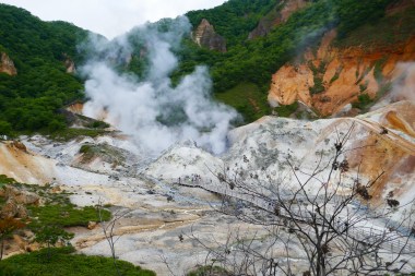 Op onze -niet bepaald rechtstreekse- route naar Sapporo doen we 3 meren aan: Toya, Kuttara en Shikotsu. De meren zijn prachtige kratermeren. Het weer werkt echter niet zo goed mee. De uitzichten zijn niet zo fantastisch, als ze ongetwijfeld kunnen zijn. De meren zijn ontstaan door vulkanisme en het hele gebied is nog steeds vulkanisch. Zo kunnen wij wel ruimschoots genieten van natuurlijke bubbels, rookpluimen en heetwaterbronnen; de onsens. De mooiste (en populairste en dus duurste) is in Hell Valley bij Lake Kuttara. Hell Valley is een soort Rotorua in Nieuw Zeeland, met stoom dat uit de grond komt, bubbelend water en stenen in allerlei kleuren. En dat alles natuurlijk afgemaakt met een snufje zwavel. Een geweldig natuurlijk spektakel wat we een paar uur aanschouwen. Dit is voor ons de highlight van Japan!