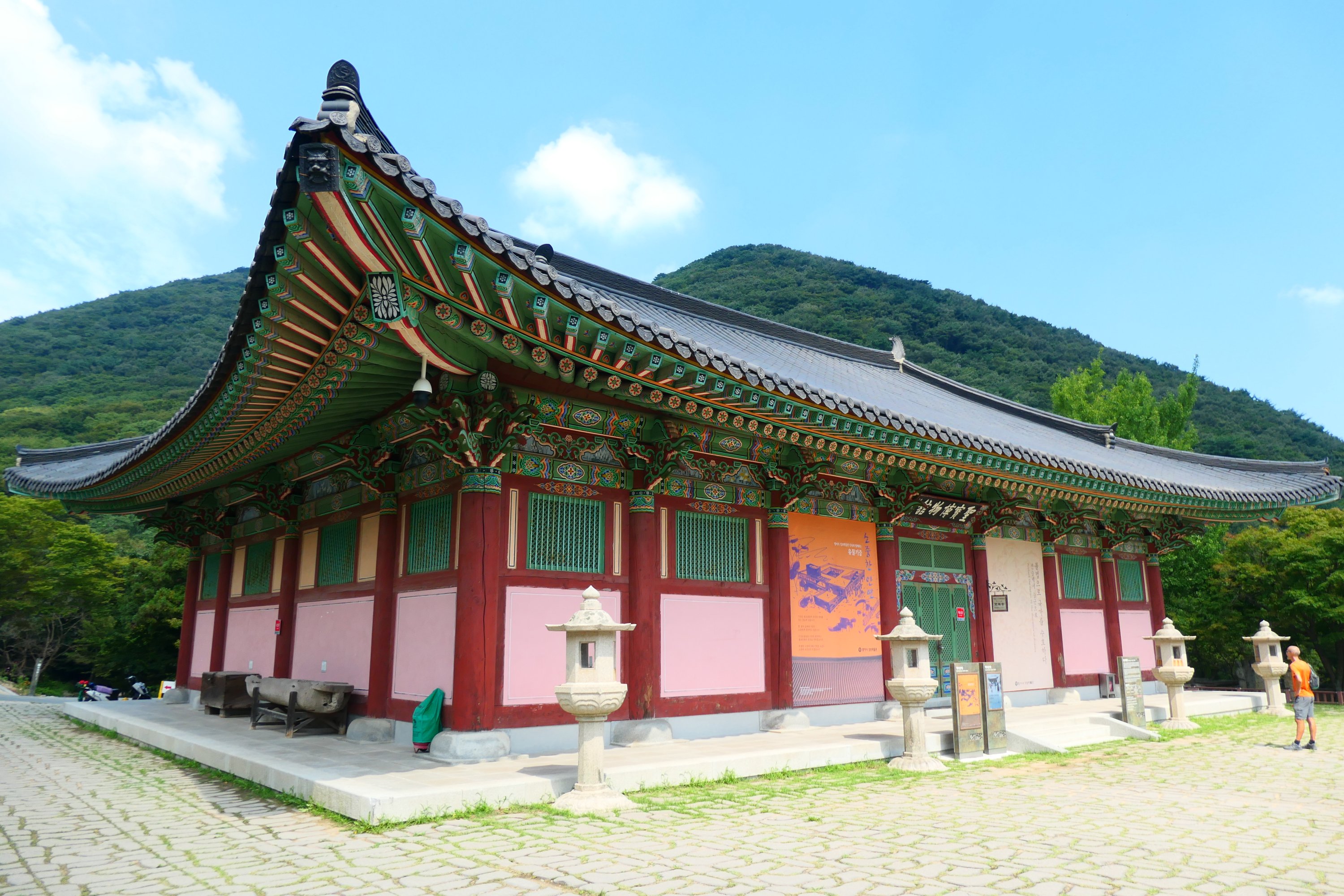 Aangezien we in het verre noorden van Busan zitten, verkennen we deze omgeving en gaan aan de wandel. Koreanen zijn dol op wandelen en dus zijn er overal wandelpaden. We wilden een wandeling van 18km doen, maar Danil vindt dat te lang (er staat dan ook wel 8u voor…) en adviseerde de verkorte versie. Heel goed ingeschat! We zijn weer laat op gang gekomen en wandelen in de hitte naar de beroemde Beomeosa tempel. Met het idee dat we eigenlijk al (te) veel tempels hebben bezocht, vragen we ons af of we niet beter het bruisende centrum konden bezichtigen. Echter het is weer eens boven verwachting, indrukwekkend groot en heel anders! De tempel is gebouwd in 678 en deels herbouwd na vernietiging in 1613. Het is een tempel wat de luxe bouw heeft van de Joseon dynastie. Het bevat diverse gebouwen en je kan er zelfs als toerist verblijven (de zgn. templestay), interessant! Overigens zeer bijzonder te zien dat er vóór de tempel een pinautomaat en drankautomaten staan.