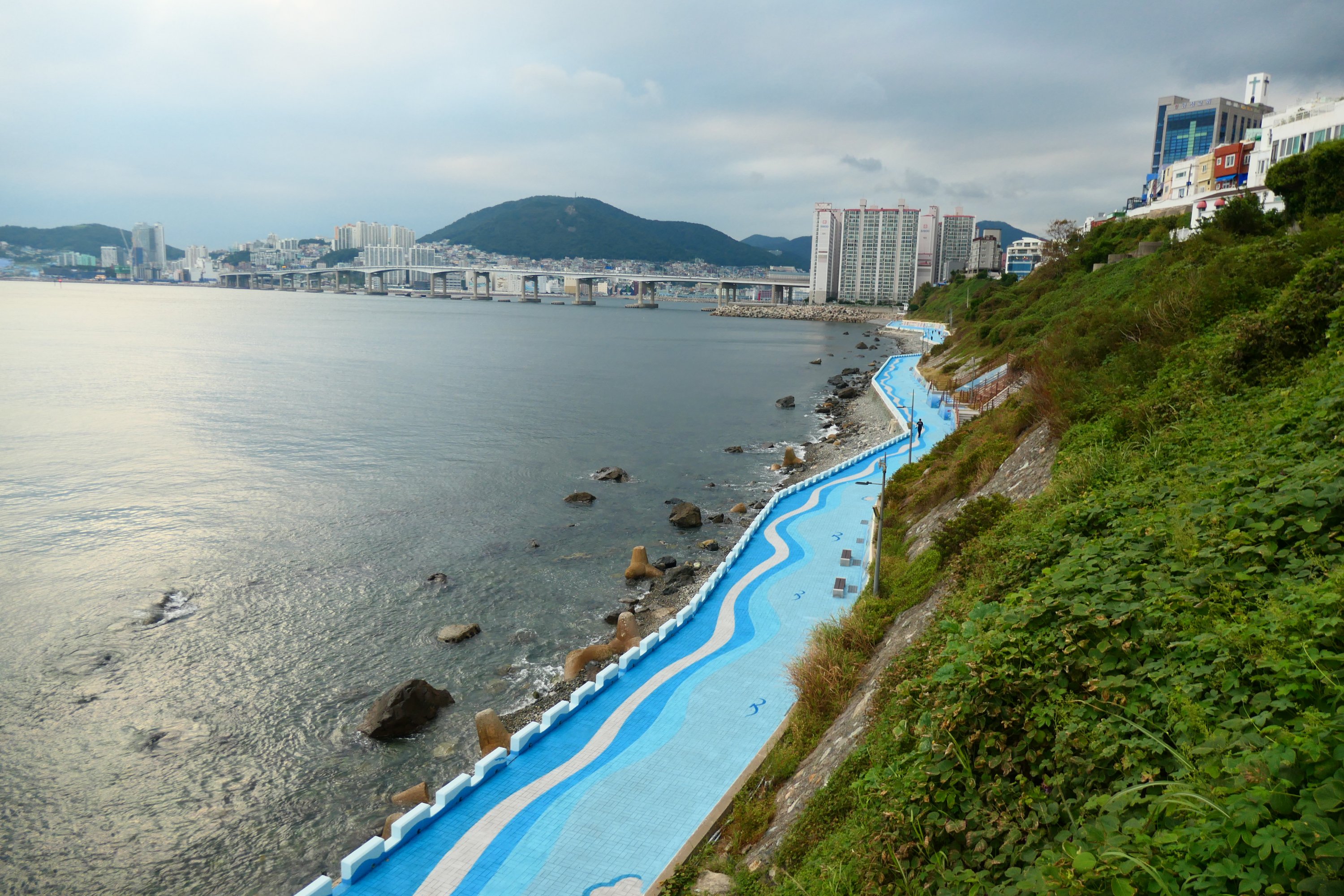 De mooie fietsroutes zijn vrij nieuw en over de oostkustroute wordt veel geschreven. Echter na beiden uren op internet surfen komen we er maar niet uit waar we in Busan kunnen starten, vinden we geen gedetailleerde kaart van de route en is het nog altijd niet duidelijk of de route al wel af is. Er is een ‘certification centre’ waar je info zou kunnen halen. Net als de Japanners blijken Koreanen dol op stempelen en kan je naast de kaart een stempelpaspoort kopen. We vinden het stempelen niet zo nodig, echter we willen en moeten wel het startpunt hebben! En dus gaan we noodgedwongen vandaag eerst 10 km westwaarts naar dit centrum toe, alvorens we onze sightseeing route noordoostwaarts gaan vervolgen. En zo is het al middag, zucht, voor we iets gaan zien. Misschien nog een dagje bijboeken? 😉