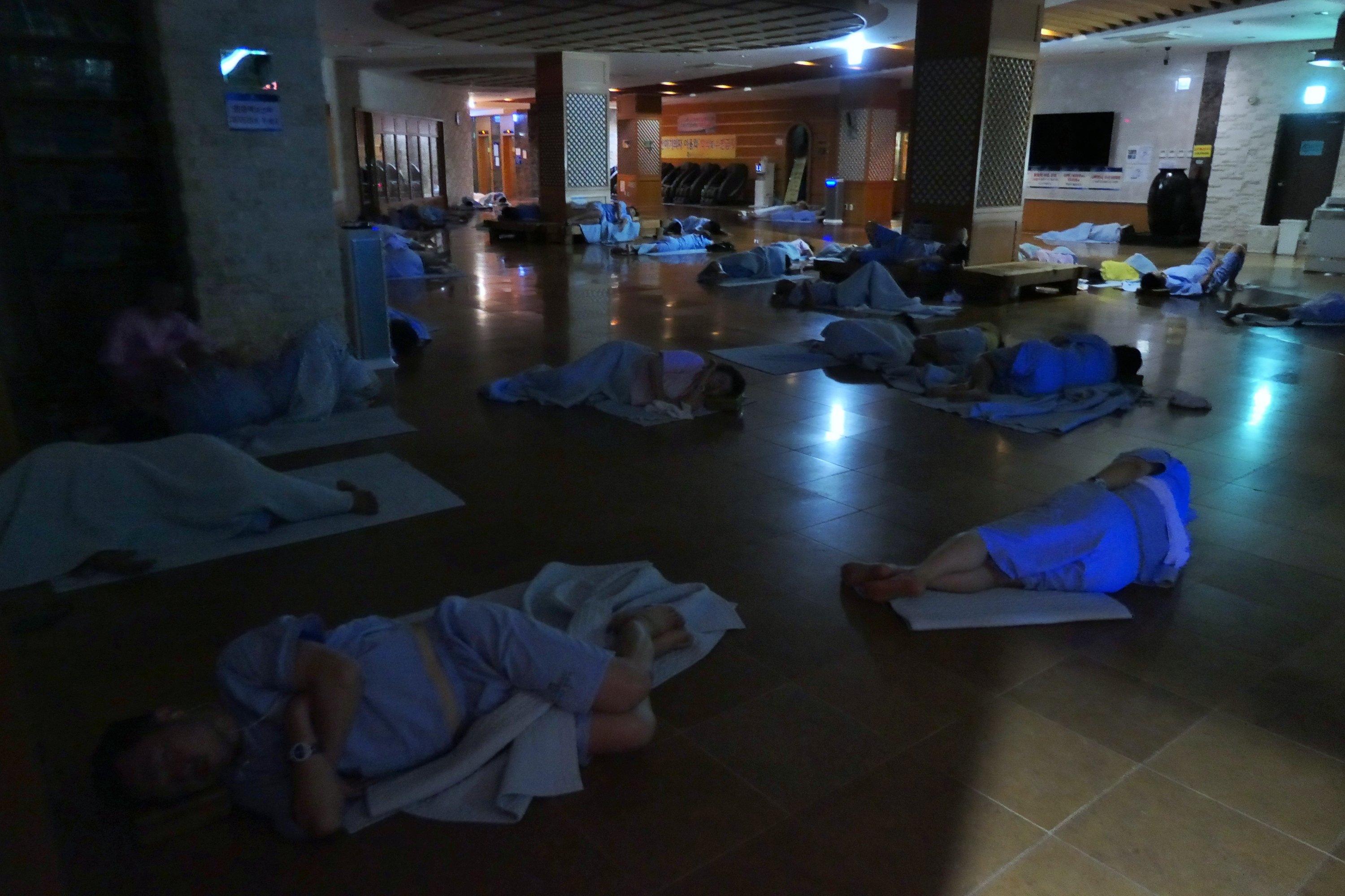 Over nieuwe uitdagingen gesproken…, ’s avonds gaan we naar de jjimjilbang. De wat?? De jjimjilbang is een bad/saunacomplex vergelijkbaar met de Japanse onsen. Met een relaxruimte (alsof je dat na dat gerelax nog nodig hebt), alleen hier kan je ook nog overnachten. Een relaxruimte, annex slaapkamer dus. Dat is wat voor ons en perfect voor vanavond!