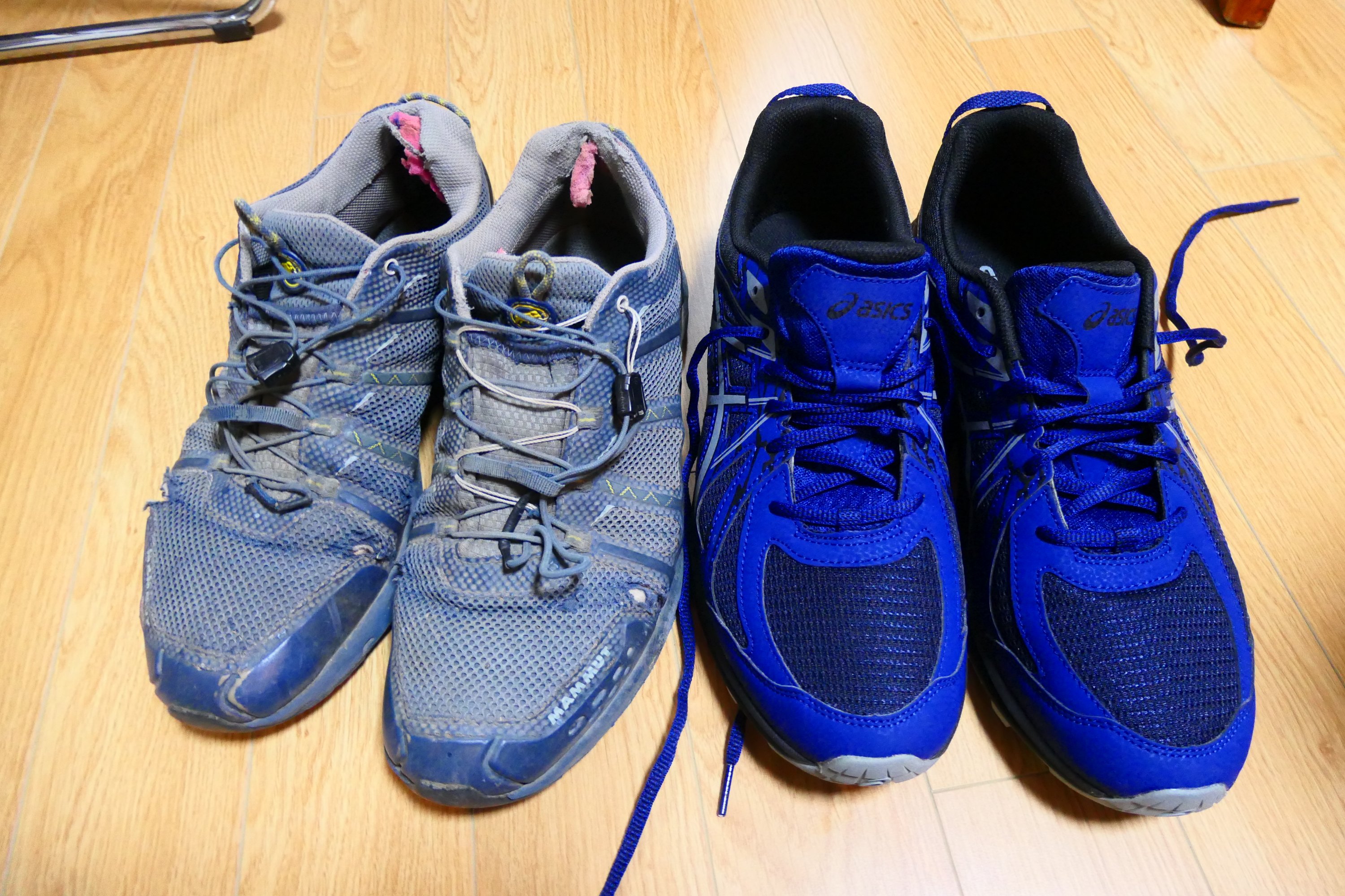 Mokpo is de stad waar we de boot nemen naar het eiland Jeju. Het is een flinke stad en we slapen in een (love)hotel vlakbij een groot winkelcentrum met een hoop reuring. Een uitstekende plek om even te shoppen voor schoenen. Onze schoenen zijn hoognodig aan vervanging toe, zeker als we op Jeju willen gaan wandelen. Auke slaagt snel, zie hier het resultaat: