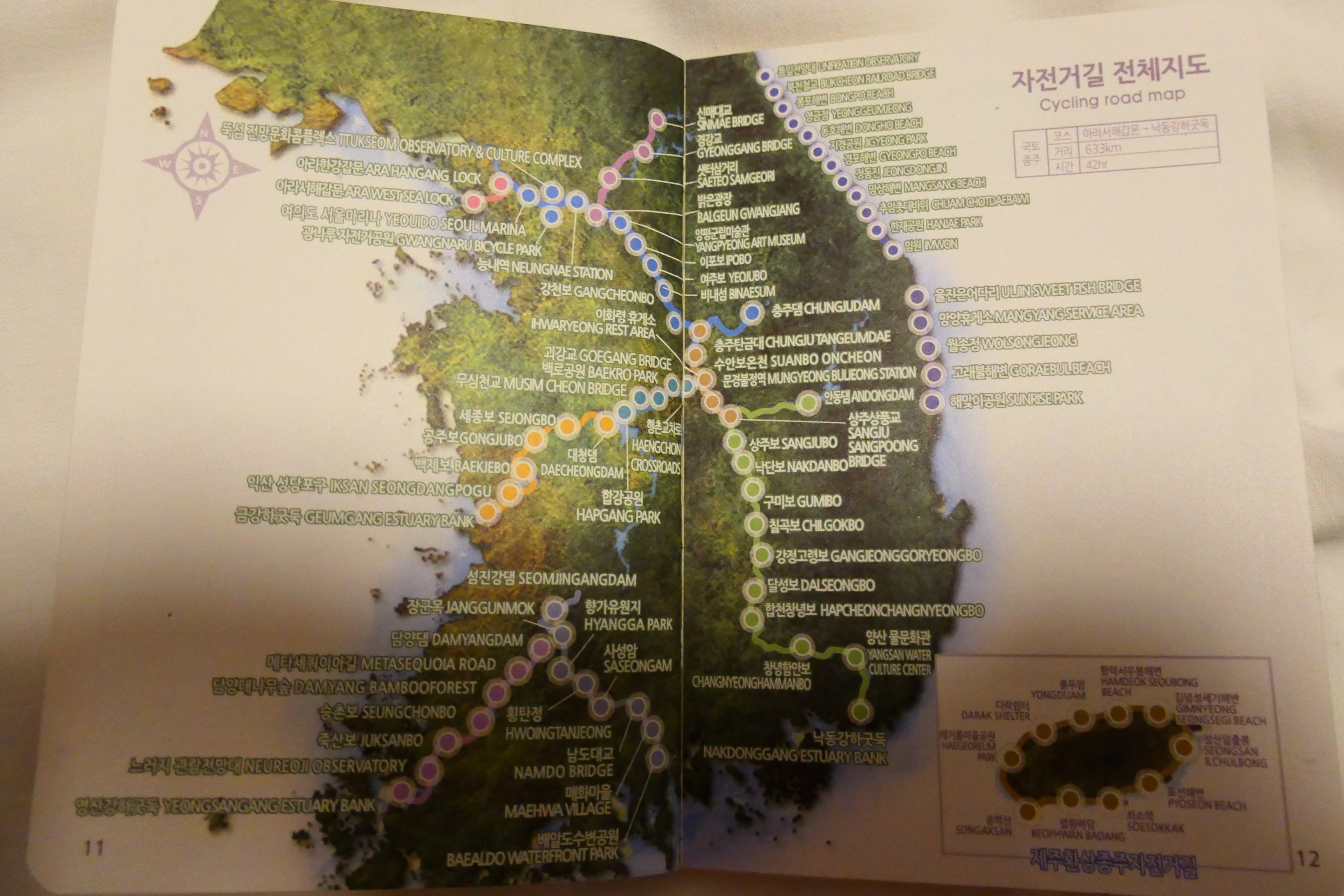 En wat het fietsen in Zuid-Korea zeker anders maakt dan Japan zijn de hellingen. Ten nadele! De wegen zijn altijd picobello verzorgd, maar als er een heuvel of berg geslecht moet worden, dan leggen Koreanen gerust een weg aan met een hellingsgraad van 10% of meer. Zelfs hellingsgraden van 20% zijn niet ongewoon. En dat terwijl de Japanners alles in het werk stellen om nooit, maar dan ook werkelijk nooit een hellingsgraad van meer dan 5% te hebben. Dus ja een fietsland, al hoewel buiten de rivierenroutes vooral geschikt voor bepakte berggeiten, racefietsers en mountainbikers.