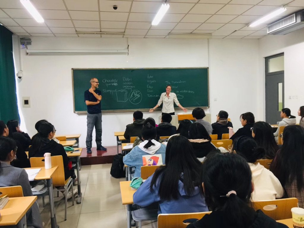 In Marokko, in India en nu in China staan we voor de klas. Een klas vol leergierige studenten die Engels willen leren. Onze hosts zijn docenten Engels al heeft Tracy onlangs het yoga-en ontdekt en is docent yoga geworden. Jack doceert nog altijd en neemt ons mee naar zijn klas. Hij introduceert ons en geeft de klas een paar minuten tijd om vragen voor te bereiden. En ze vragen ons het hemd van het lijf, bijna 2 uur lang stellen ze de meest gevarieerde vragen, ieder vanuit zijn eigen interesse. Hoe zit dat met die tulpen in Nederland? Hoe blijft Nederland droog, terwijl het grotendeels onder zeeniveau ligt? Hoe ontmoet je je levenspartner in Nederland? Hoe begroet je elkaar? Wat brengt jullie in China? Wat is het leukst aan de reis? Waarom fietsen?? Wat zijn de moeilijkheden die je hebt gehad? Ik wil in Leiden studeren, wat kan je daar studeren? Huh??