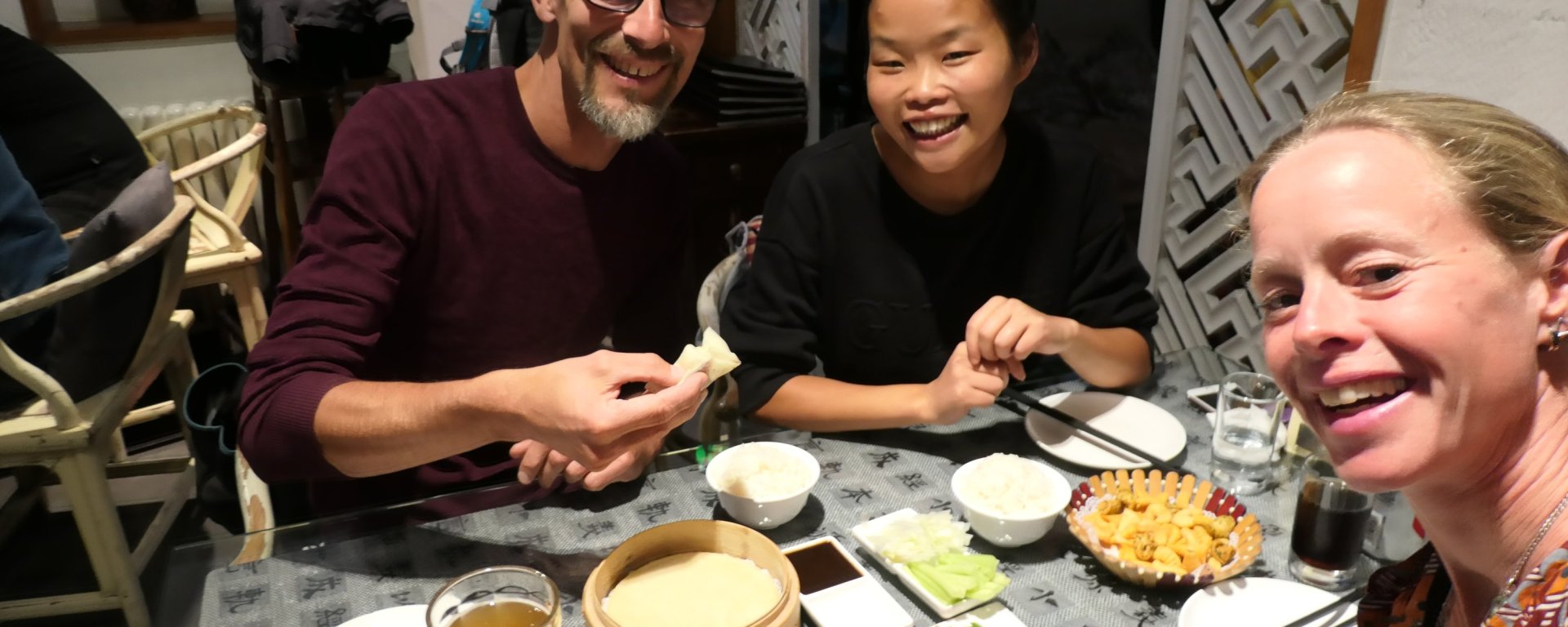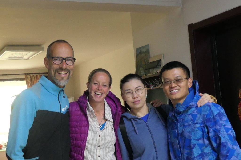 Tegen 21.00 uur zijn we met wat omzwervingen vanwege dichte poorten, miscommunicatie over locatie etc., eindelijk op bestemming. Tracy en Jack hebben een zoontje die onze aandacht wil en de moeder van Jack is ook net gearriveerd en blijft een tijdje hier. Heel Chinees; ze komt een handje helpen in de huishouding en de zorg over haar kleinzoon op zich nemen. De avond is al met al te kort voor goede gesprekken, maar het levert al een plannetje voor de ochtend op!