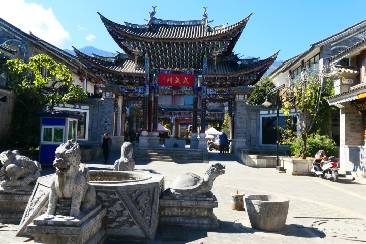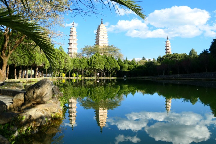 Dali, de oude stad Dali wel te verstaan, is een aantrekkelijk plaatsje. Er is wel heel veel nadruk op winkelen en eten, desondanks behoudt het zijn charme. We hadden 2 nachten geboekt, maar besluiten er snel 3 van te maken. We hebben een mooi hotel voor een mooie prijs. Het is ’s avonds koud op de kamer en de enige verwarming bestaat, zoals wel vaker, uit een elektrische deken. Dat is dus vroeg het bed in. We bekijken het stadje uitgebreid, eten twee keer bij de veganist, bezoeken een park en de drie indrukwekkende pagoda’s met bijgelegen tempelcomplex; het paradepaardje van Dali. Maandag worden we actiever en wandelen we een kilometer of 21 over de Changshang berg. Een alleraardigste wandeling over een bizar netjes aangelegd pad. Heel geschikt voor massatoerisme. De rode panda, de luipaard en andere interessante dieren laten zich dan ook niet zien.