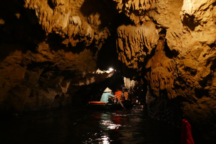 Ninh Binh, of eigenlijk de omgeving ten westen van Ninh Binh, is een gebied van karstbergen. Uit vlaktes met waterpartijen en rivieren, stijgen plotseling indrukwekkende, steile rotswanden uit de grond. Het is een landschap dat in dit deel van Azië meer te zien is. Voor ons is dit de eerste keer dat we zoiets zien. Het is een toeristische bestemming, al valt de drukte reuze mee. Drukte die we verwacht hadden bij een boottocht in Trang An. En natuurlijk zijn er behoorlijk wat toeristen. Echter zodra je met het bootje wat verder het gebied in gevaren bent, dunt het snel uit en heb je soms zelfs het rijk helemaal voor jezelf. De boottocht is prachtig: je vaart door grotten en langs steile rotswanden tussen de rietvelden. Optimaal genieten. Het Zwitser leven gevoel.