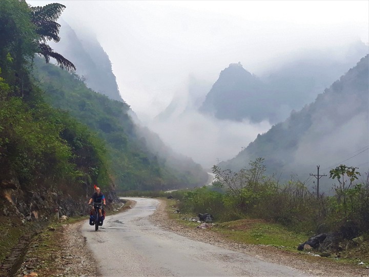 Het zit allemaal mee: het wegdek is droog en goed, de zon komt af en toe door en we hebben zelfs het windje mee. Als bonus is het landschap heel erg mooi. Zeker als we een kilometer of 25 vóór Cao Bang een fantastische afdaling hebben door karst wonderland. Ondanks de onvermijdelijke foto stops en een stop voor een fietsschoonmaakbeurt, bereiken we Cao Bang nog net voor de duisternis invalt. We poetsen weer eens alle fietstassen en checken in ons guesthouse in. We blijven hier (noodgedwongen) 2 dagen en 3 nachten, dus we kunnen even orde op zaken stellen en o.a. de hoognodige was draaien die misschien nu wel een keer droogt. Noodgedwongen, omdat TET eraan komt. TET wat Vietnam op de kop zet en waarbij winkels, restaurants en hotels sluiten. Gaan we hier veel last van krijgen? Of zullen we genieten van het grootste kerst-thanksgiving-nieuwjaarsfeest???
