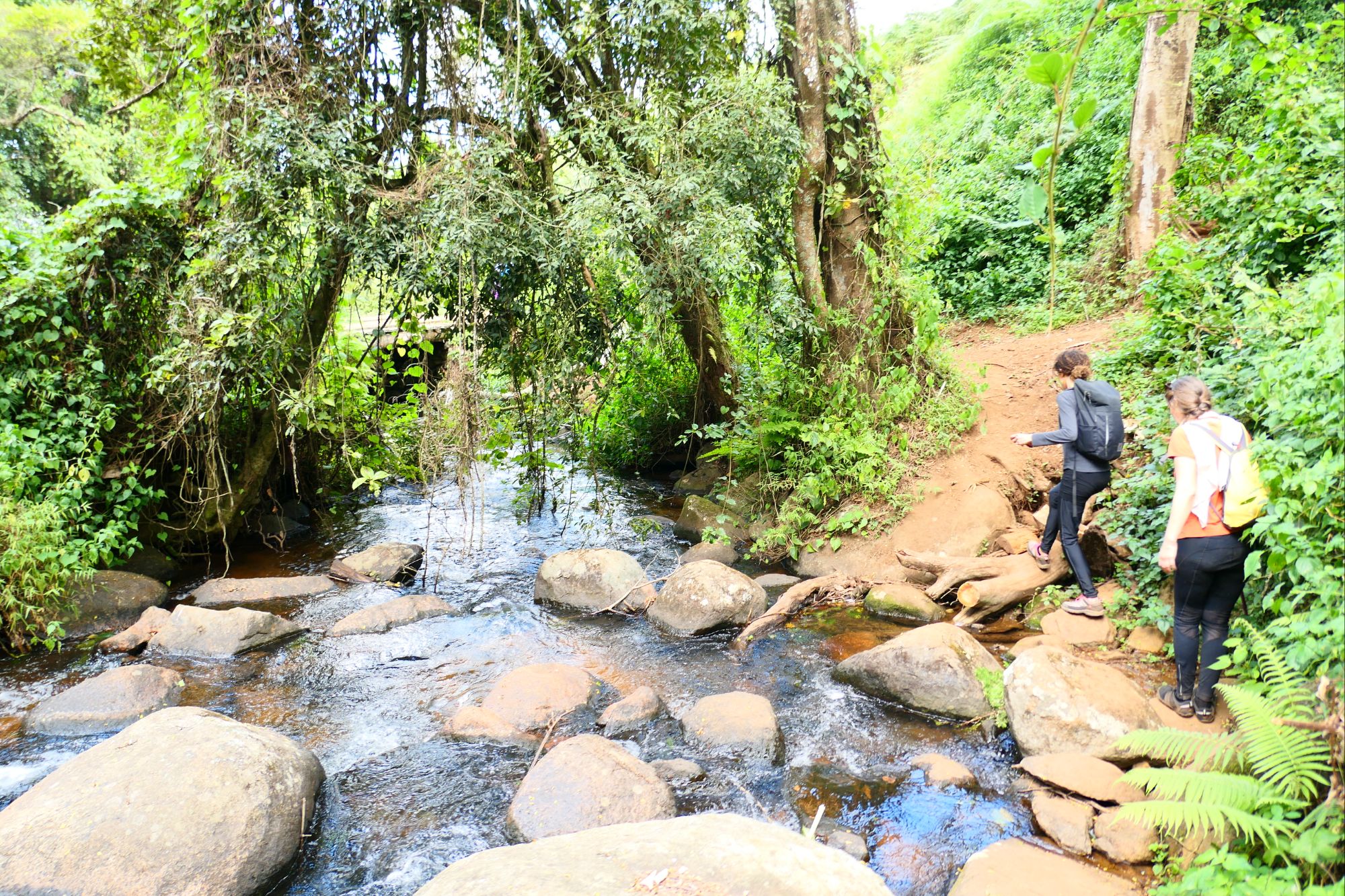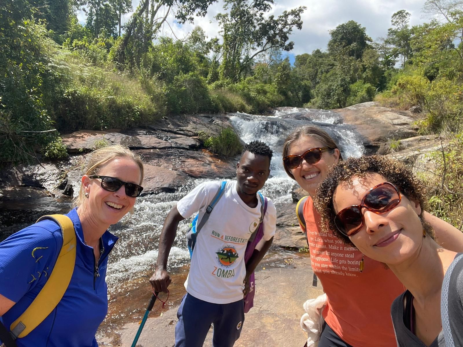 Het is dan wel weekend, maar uitslapen zit er niet bij. Ik wil ook wat zien van Malawi en we zitten tegen het Zomba plateau aan, een hoger geleden (tot 1800m) plateau. Om 7u00 rijden we bij Marije weg die al een stukje de berg op woont. Ik krijg het advies om mijn energie voor de  4km + 150 hoogtemeters naar haar toe te sparen. Dus ik loop het huis uit naar beneden en regel een motor voor 1000 MKW waardoor ik voor weer €0,50 in 10min. aankom. Met de auto rijden Matt (personeel van Marije), Marije, Kesso en ik omhoog, stekend de Mulunguzi dam over om vervolgens 12 km lopen door de mooie omgeving te wandelen. Het voelt al warm, maar dat zal het stijgingspercentage zijn.. Overal zien we mensen in het bos brandhout zoeken om hun eten op te bereiden of grote stukken boom over het pad aan het rollen om na 4u op bestemming te zijn, een minuscuul bedrag te verdienen en de volgende dag nogmaals hetzelfde te doen.