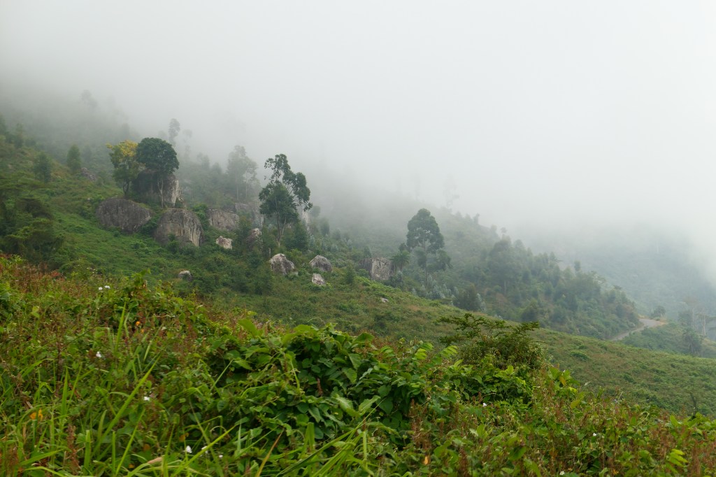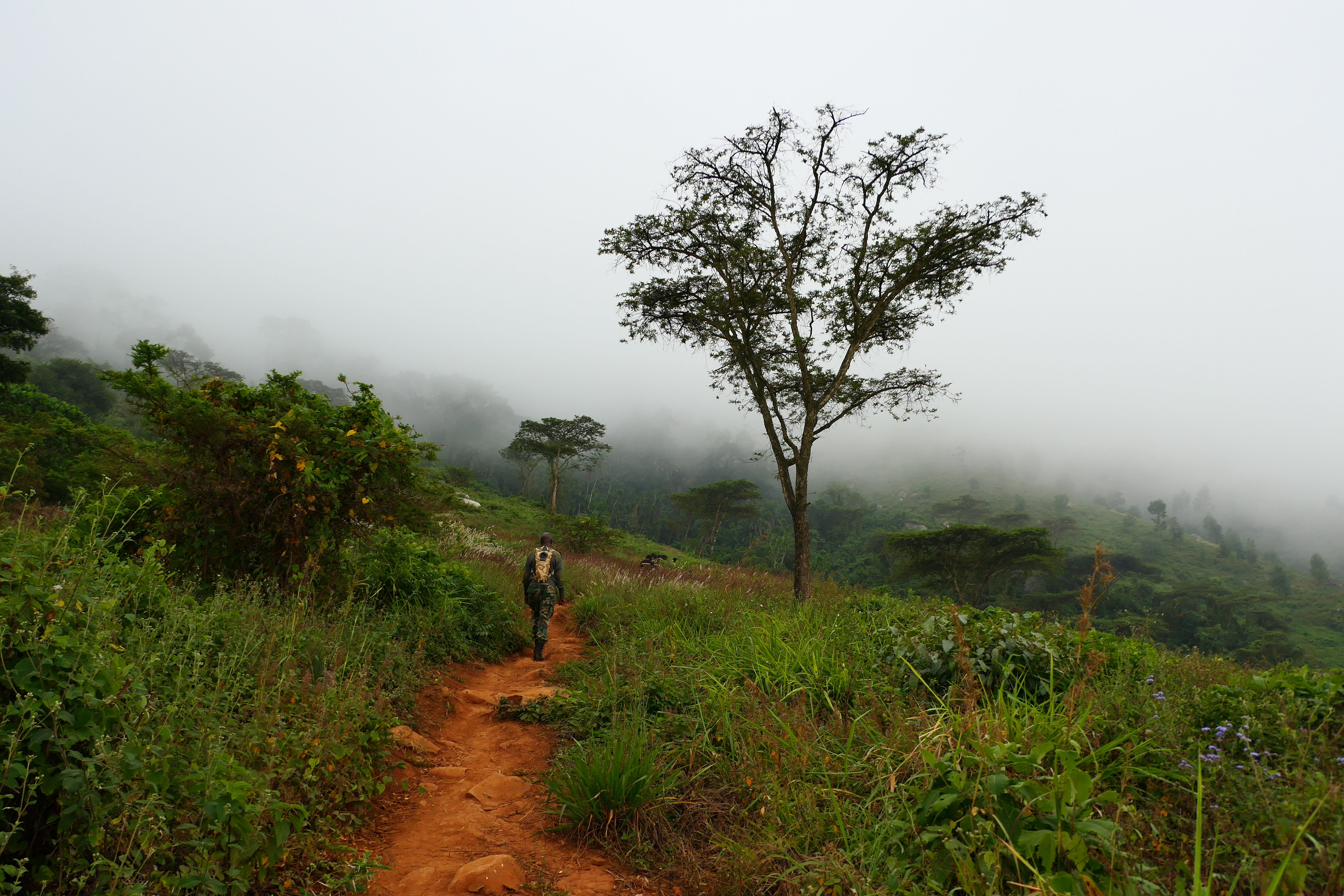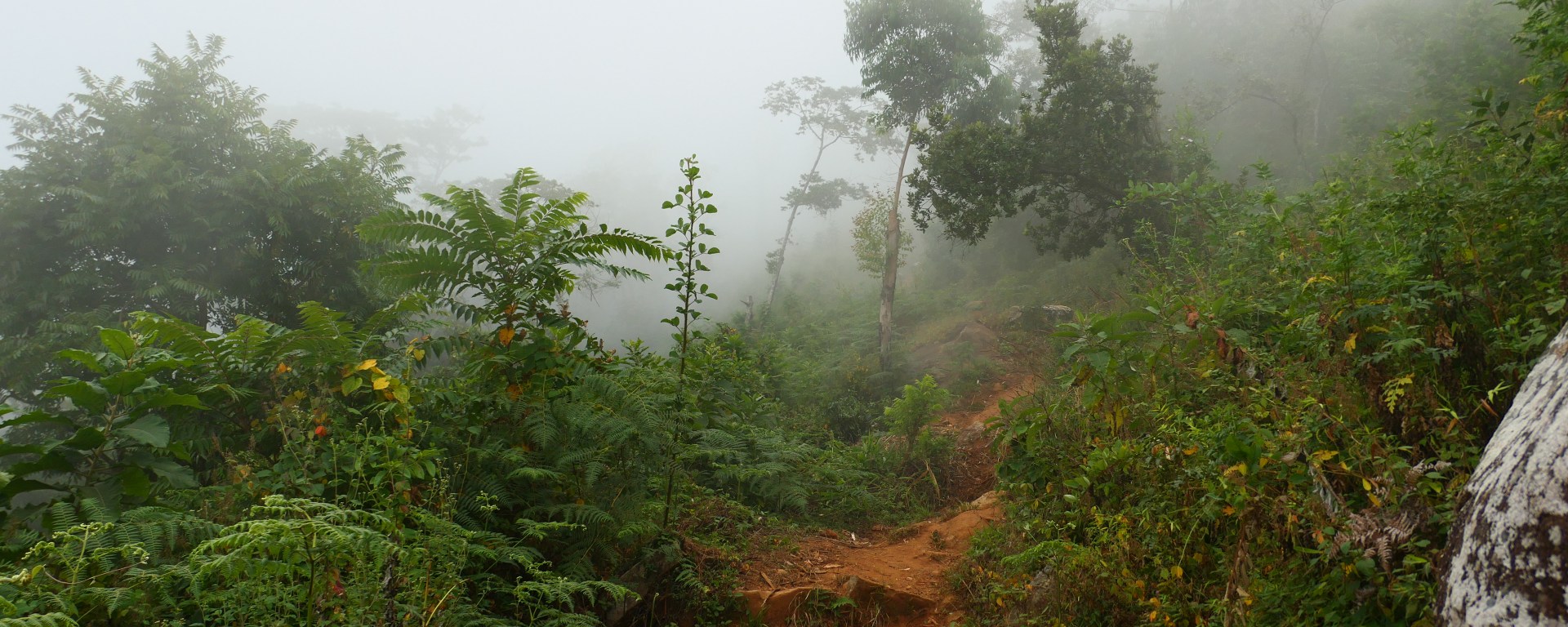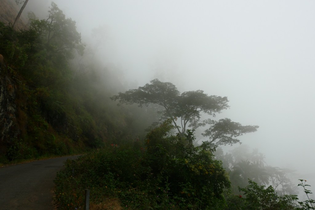Om 8u00 herken ik het punt waar we vorige keer het pad eeeeeiindelijk vonden na gestoei door de dichte begroeiing. Al vertrokken we toen op dezelfde tijd, nu ben ik er 1,5u eerder, maar wel net zo rood en bezweet terwijl het een stuk frisser is. Sterker nog, het is koud, mistig en regen dreigt. Zo danig dat ik vrij snel erna bij hotel Sunbird (waar het zwembad is) weer pauzeer en het weer afwacht gedurende een uurtje. Ik heb dan netto ‘slechts’ 1,5u gelopen over 5 km en 600 hoogtemeters gemaakt.