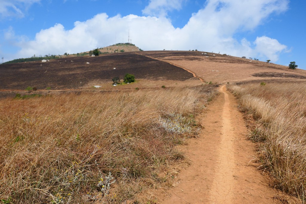 Om 15u00 ben ik terug in de meer bewoonde wereld rondom Sunbird. Statistieken: Bijna 9u onderweg, netto 5,5u gelopen, 21km, 4% batterij…. Ik wil drinken en de telefoon opladen maar Sunbird is 500m de verkeerde kant op en ook nog eens omhoog. Ik loop over de (auto) weg naar beneden en gok op een winkeltje of guesthouse nabij, maar ik heb misgegokt. Wel tref ik een groep apen die ik probeer te fotograferen, maar er komt geregeld wat naar beneden, onder andere gezeik, maar gelukkig was dat net mis! Bij een pauze drink ik het laatste kraanwater op, het zou immers veilig moeten zijn, ik ben uitgedroogd en ander drinken zit er voorlopig niet in. Een man in oude versleten kleding komt naar me toe en wil een veel te grote steen verkopen, ik ben duidelijk doch vriendelijk dat ik niets wil kopen. Hij neemt naast me plaats en hemelt de steen nog verder op alsof het een diamant betreft en geeft aan al dagen niet te hebben gegeten. Als ik een gekookt eitje aanbied neemt hij die met beide handen aan en bedankt me meermaals als hij het eitje oppeuzelt. Toch nog allebei blij 😉. Dan loop ik verder met meerdere mensen die allemaal via de weg naar beneden lopen. Geregeld haakt iemand aan om een praatje te maken.