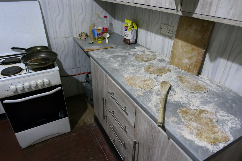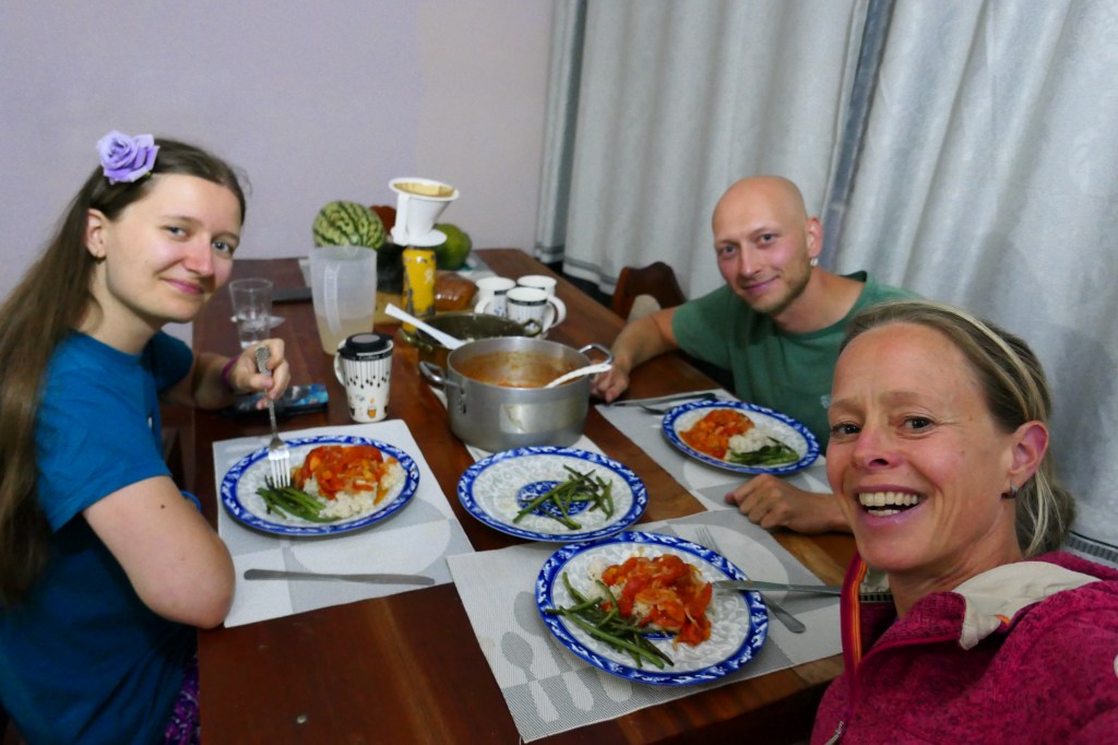Waarom is dit de eerste keer na 3 maanden dat ik hier woon? We bieden weleens eten aan als we over hebben, maar meestal is dat laat (20u) en hebben ze al gegeten. Tom kan soms wel laten weten dat hij het koud heeft en graag thee met kilo’s suiker wenst en als we dan ook eten aanbieden neemt hij het altijd aan, maar meestal koken en eten de heren samen op het moment dat Ellis en ik dat ook doen.