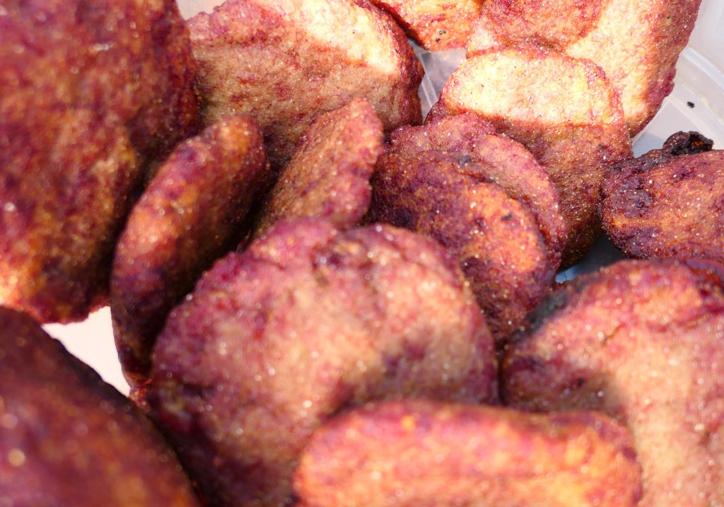 Ik moet echt van het heem en non-heem ijzer verhaal af en door…! Hoe meer bronnen ik raadpleeg, hoe ingewikkelder het wordt. Ik check bij mijn supervisor, het Voedingscentrum en meer, want welke vorm ijzer wordt nou wel of niet door de ijzerstatus beïnvloed.. en wie beweert wat en op basis van welk artikel? Ja het is wel relevant, maar niet zo relevant als alle snacks en straateten dat geregeld wordt geconsumeerd. Want ook daar weet ik nog onvoldoende vanaf. Dus ik moet hoognodig veldwerk doen en mijn lokale collega Gladys kan vandaag mee op pad. Om 9u is de beste tijd voor de ochtendsnacks en we wandelen van snack naar snack naar de stad. Ik fotografeer, weeg, noteer, etc., terwijl Gladys me naar je juiste plekken brengt en geregeld vertaalt. De straatverkopers die de frituurhapjes verkopen spreken net iets minder vaak Engels dat Gladys vaak moet bijspringen. Ondertussen testen we natuurlijk ook van alles, al is het omdat de bereidbaarheid mee te werken daarmee groeit of zelfs bepalend is. De bananensnack bevalt het beste, de oliebollen die je veel ziet zijn saai, de pinda-tijd lijkt voorbij en de pindazakjes daarom gekrompen en de grasshoppers waren niet zo lekker vers en knapperig als afgelopen maandag! Als we kleine grijze beestjes zien, krijg ik de bevestiging dat het de ‘Mozambikaanse mus’ is. Wildvangst dus, die net als duiven, muizen, ratten, maar ook apen gegeten worden. Gladys vindt ze heerlijk en dus nemen we ze mee om te wegen en proeven en bah, die pootjes incl. botjes erbij op te knagen.