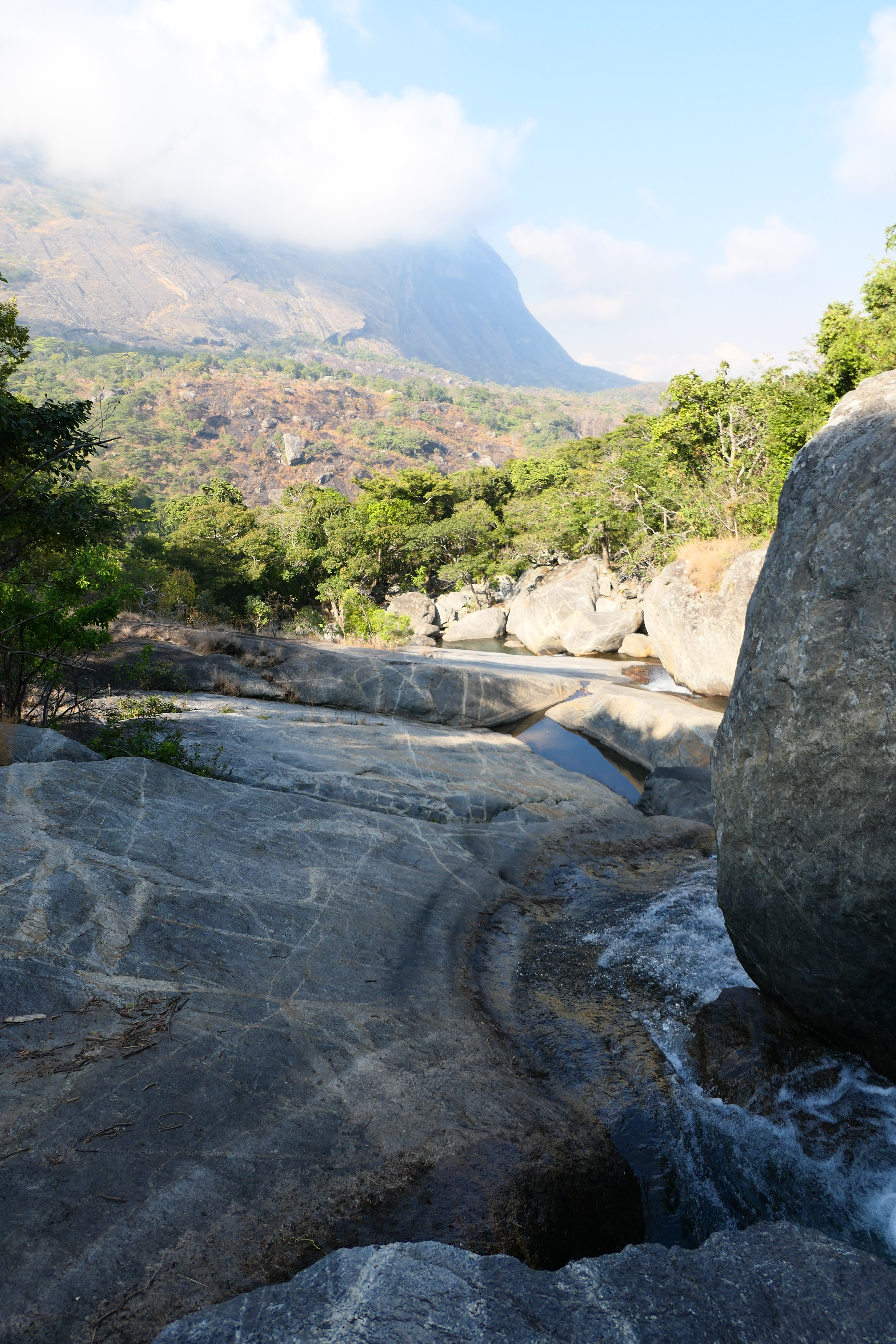 Mulanje is, net als het Zomba plateau, een enorme granieten puist, met meerdere pieken waarvan de hoogste piek net boven de 3.000 meter is. Verspreid over het plateau liggen een negental hutten. Deze hutten hebben elk een beheerder en voor een verblijf in een hut betaal je het schokkende bedrag van 1.000 Kwacha (nog geen €0,50). De Chisepo hut is één van de populairste/meest bezochte omdat het de meest logische uitvalsbasis is om naar de hoogste top te klimmen. Maar dat is voor morgen. Nu is het een kwestie van uitrusten, de voeten in de rivier die langs de hut loopt en op een houtvuurtje met een geleende pan onze maaltijd (pompoen, zoete aardappel en soja brokken) bereiden. Als Hilgien haar telefoon checkt als we even bereik hebben, blijkt dat we heel wat berichten hebben gehad van bezorgde vrienden en familie omdat er kennelijk een vliegtuigje is neergestort met in elk geval een Nederlandse vrouw aan boord. Nadat we het thuisfront gerust hebben gesteld, gaan we vroeg naar bed. Hilgien kijkt niet alleen uit naar wat uren slaap, we willen tevens proberen om de zonsopkomst op de bergtop te zien. Gids en drager wilden eigenlijk pas om 6 uur op pad, maar dan gaan we zeker geen zonsopkomst boven op de berg aanschouwen. Met een dosis overtuigingskracht overreden we de door ons ingehuurde en betaalde gids en drager om rond uur of 4 op pad te gaan.