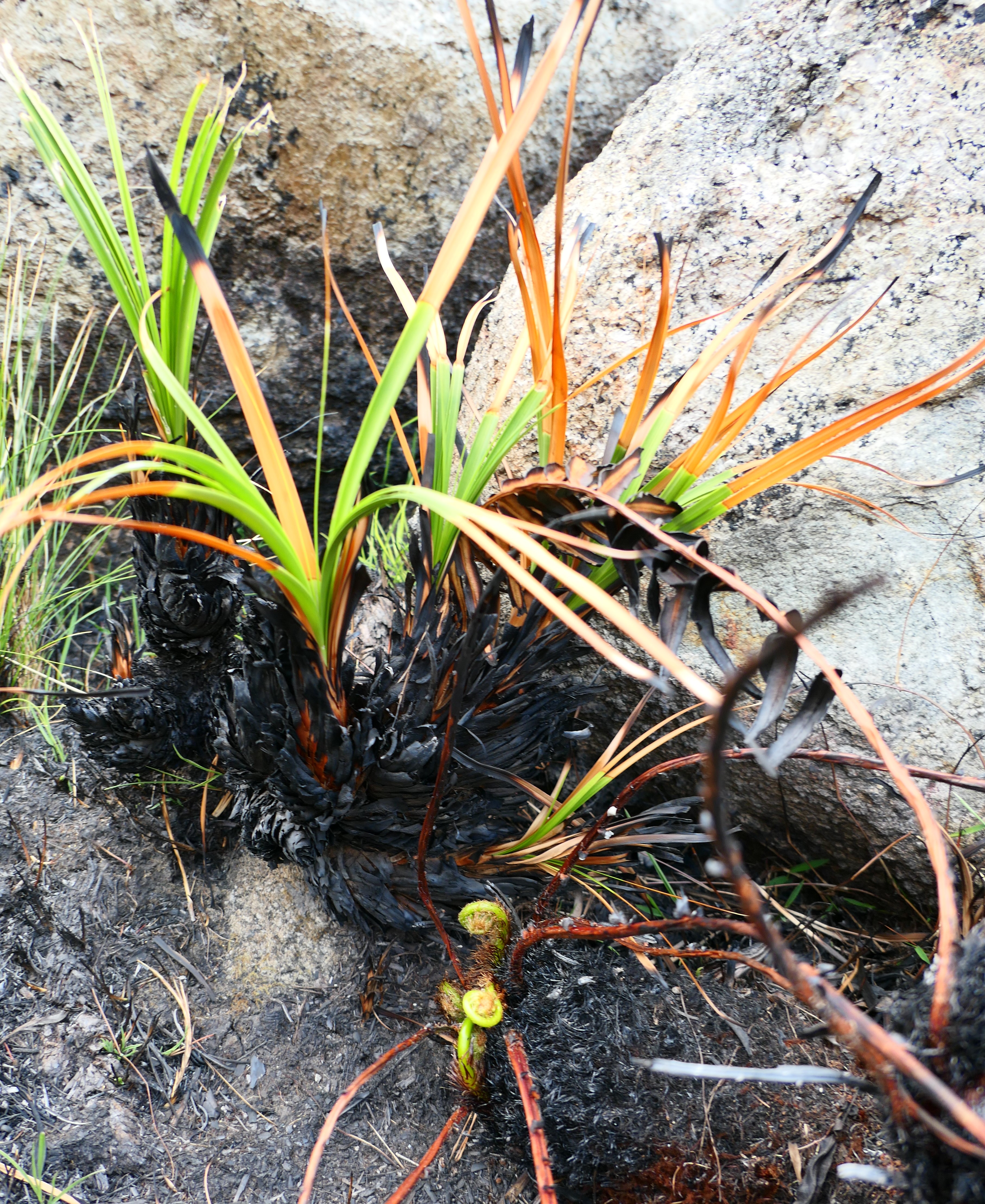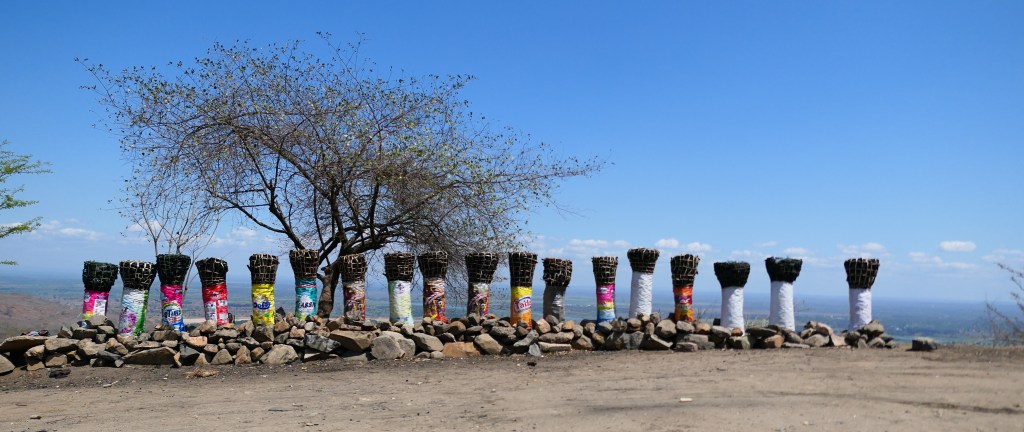 Bij de hut drinken we eindelijk onze koffie en lunchen we. Ook even de voeten koelen in de rivier, zodat we weer enigszins verkwikt onze tocht kunnen vervolgen. Even na 12u vertrekken we. Super veel marge hebben we dan eigenlijk niet, als je bedenkt dat de wandeling 5 uur duurt en het om 18u toch echt wel donker is. De wandeling is wel mooi en toch ook wel heel anders dan gisteren en vanmorgen. Wat ook indruk maakt zijn de grote verbrande (aangestoken) velden en dan die sterke planten die toch weer vanuit hun wortels het leven erin blazen en opkomen. We lopen nu op het plateau en qua reliëf gaan we niet vreselijk veel meer op en neer. Er is dus tijd voor Hilgien om de gidsen eens uit te vragen over eten en eetgewoontes (macht der gewoonte). Voor heel veel eten blijkt er een lokale versie en een hybride versie te zijn. Hybride wil in dit verband zeggen: geïmporteerd en/of genetisch gemodificeerd. Dit geldt voor kippen, maar dus ook voor gewassen zoals maïs. En in tegenstelling tot steeds gedacht is de lokale kip waar nauwelijks vlees aan zit, toch echt de meest gewilde kip, die hybride kip is ‘immers’ de vetgemeste, snelgroeiende kip…