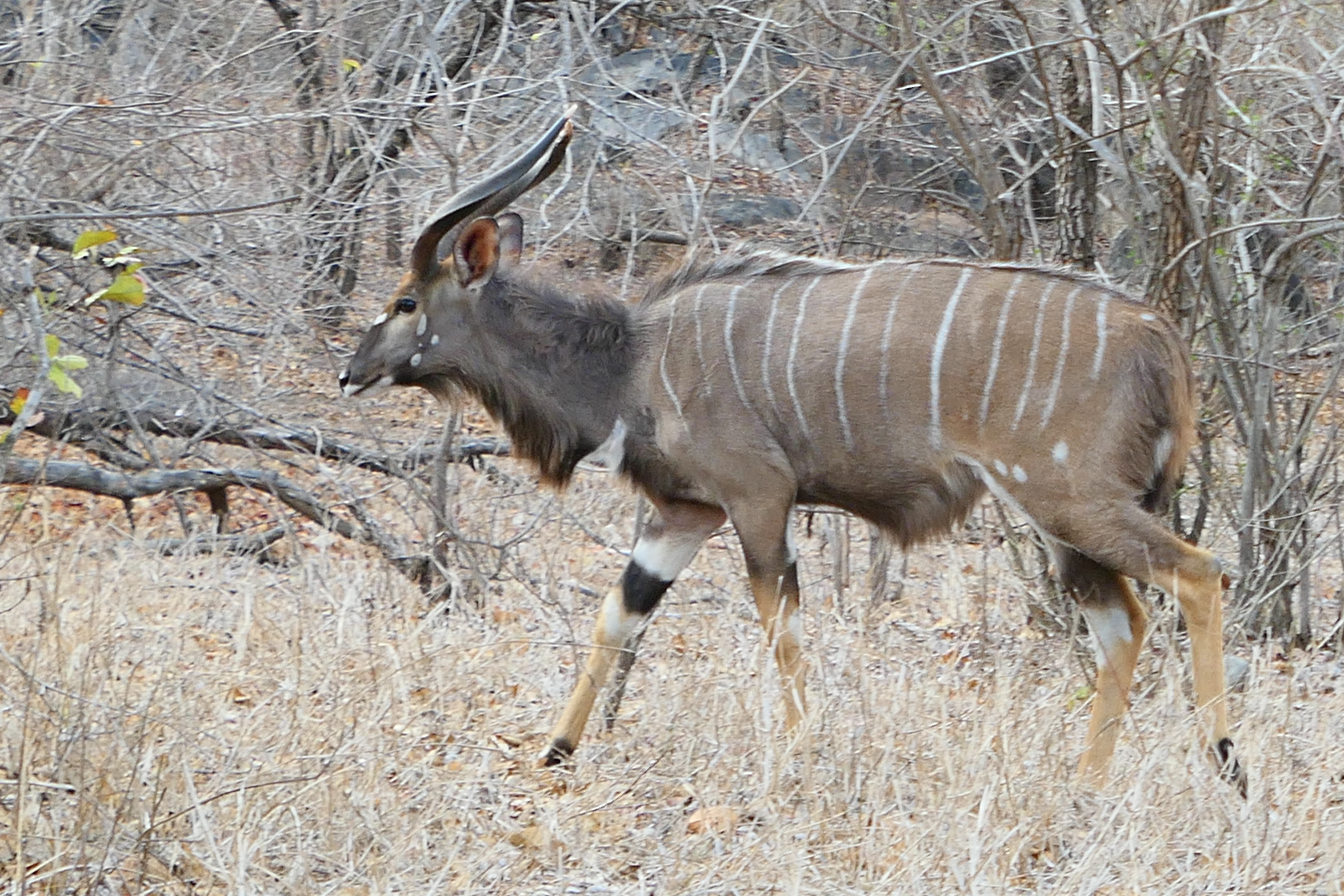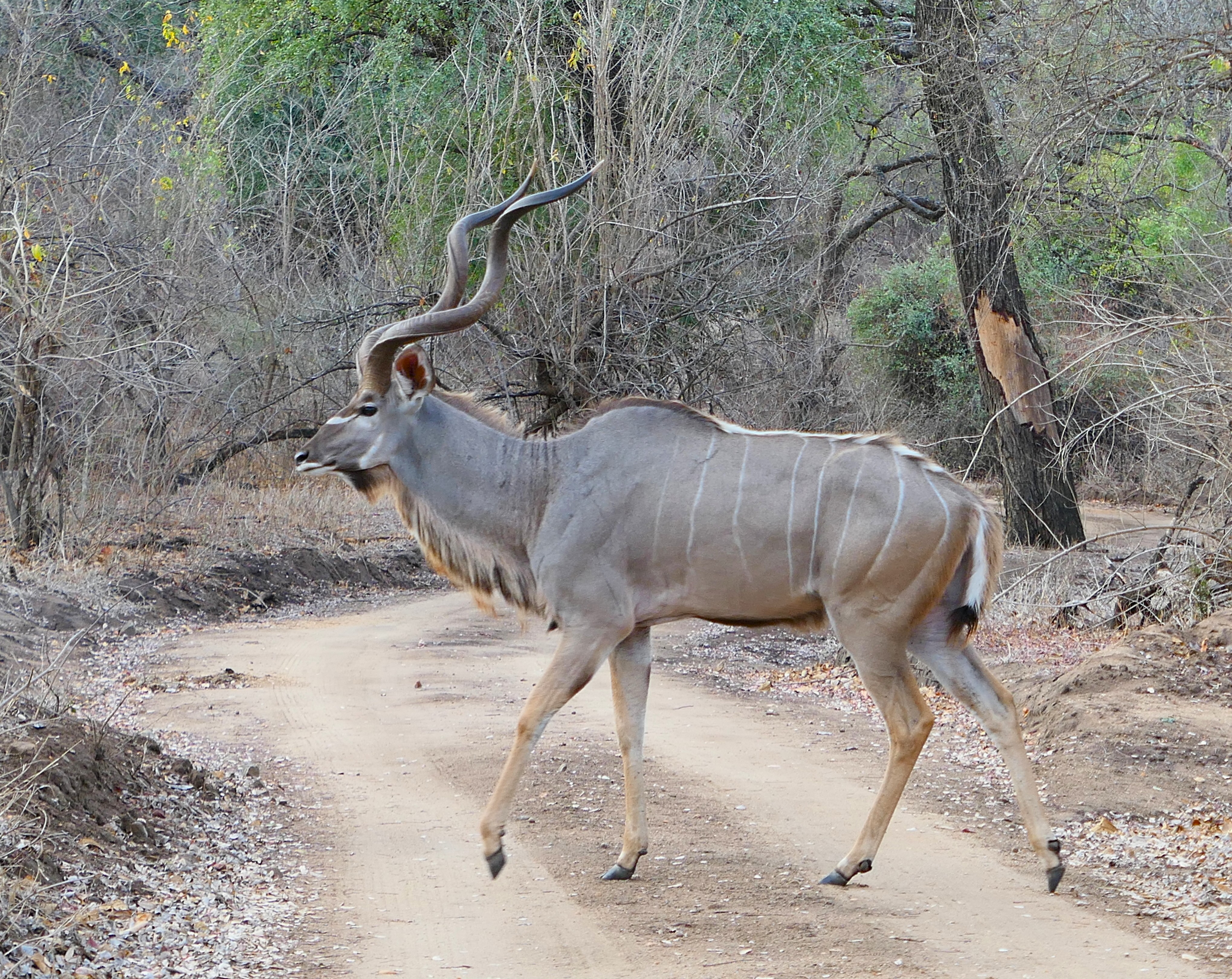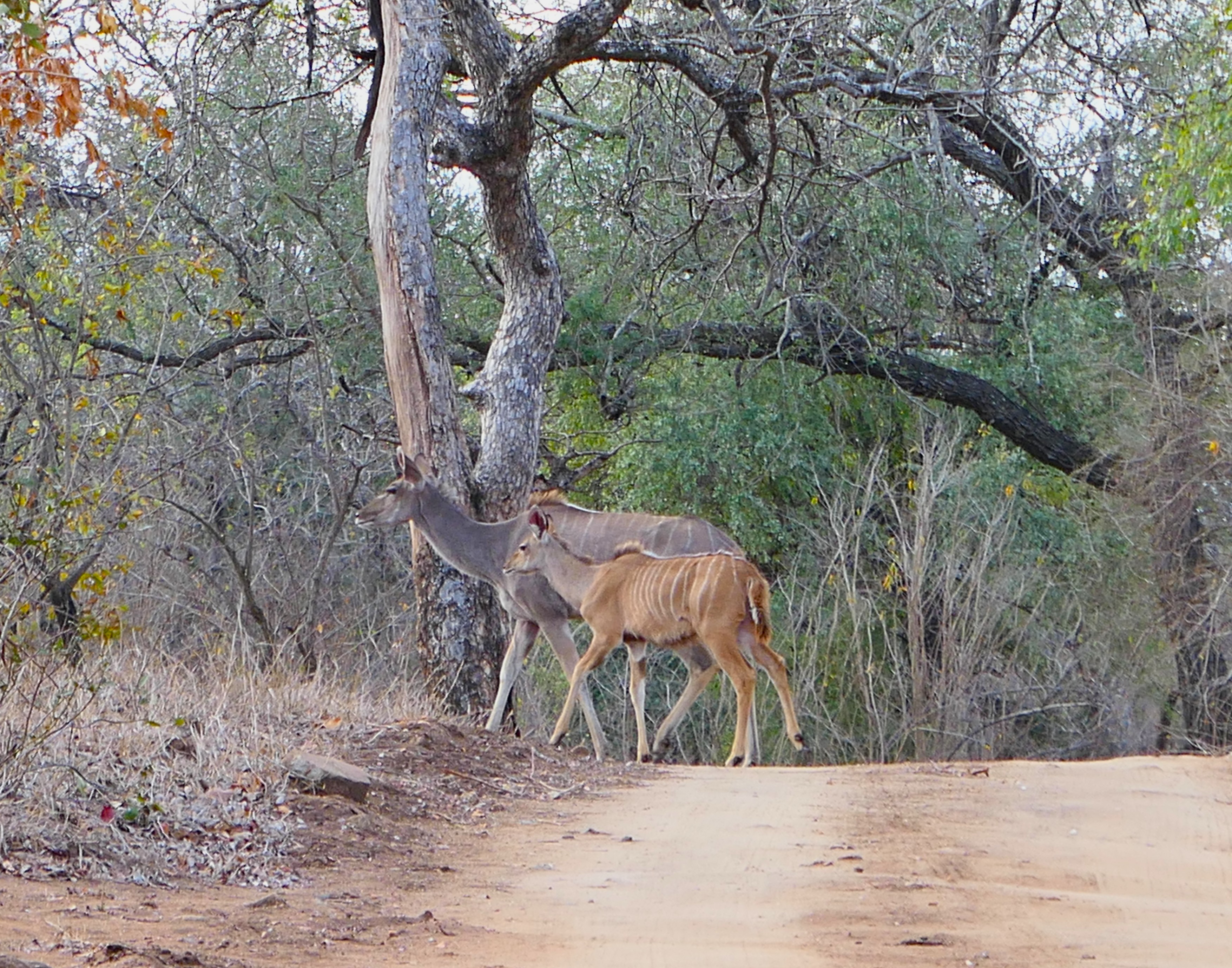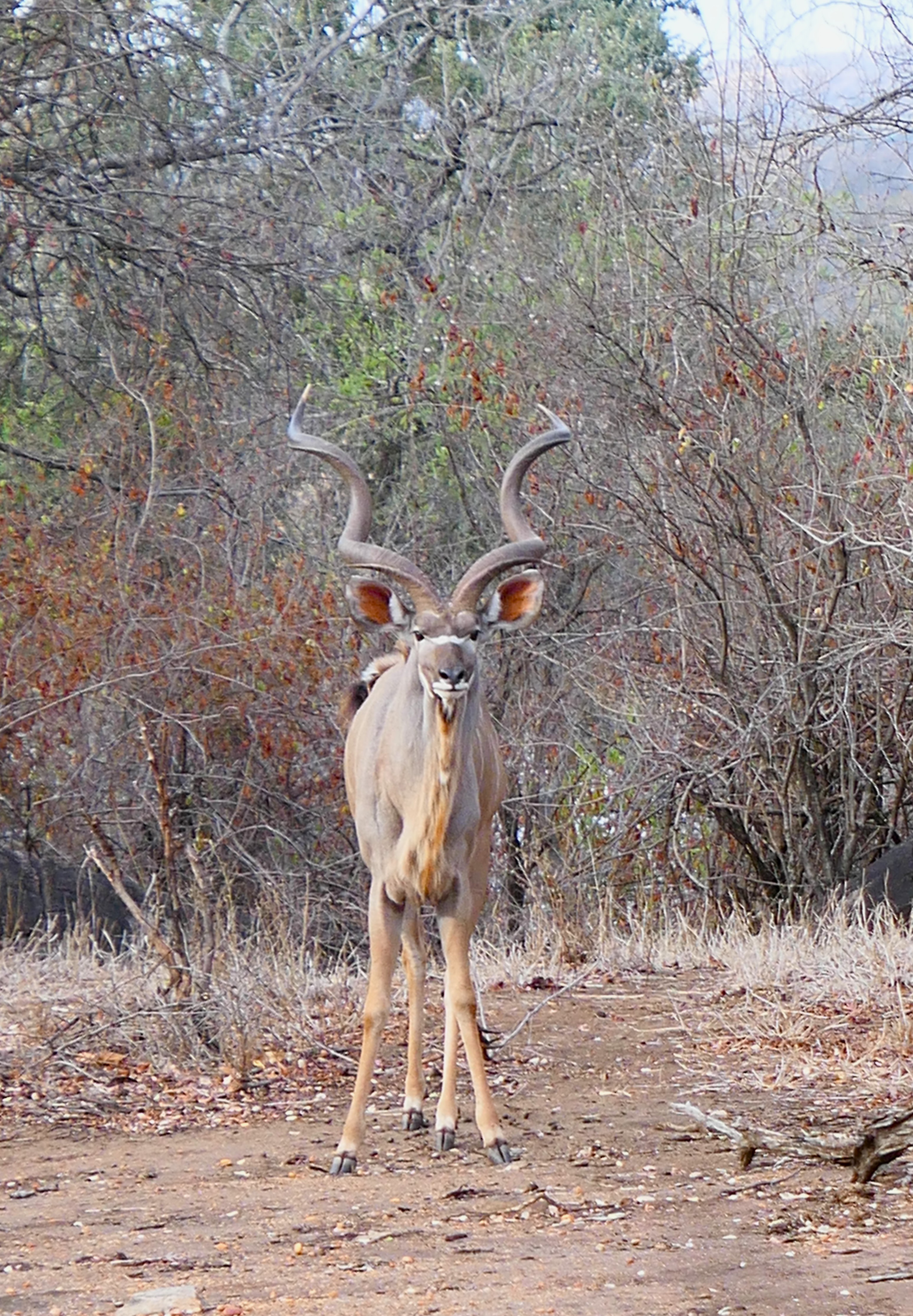 Later op de dag gaan we met z’n tweeën met ons huurautootje het park in. Zo gaaf dat dat kan én mag, zelfs met onze simpele auto! En al snel is duidelijk dat dat veel leuker en relaxter is omdat je dan alles op je eigen tempo doet. Alle dieren die we in de ochtend hebben gezien, zien we nu ook, plus een olifant, zij het op een behoorlijke afstand. De impala’s zijn talrijk en prachtig en de wrattenzwijnen (Pumba!) schattig. Zeker als ze een draf inzetten waarbij ze hun staart recht overeind hebben. Uren toeven we rond, mogen zelfs op een paar punten de auto uit en schieten tig foto’s.